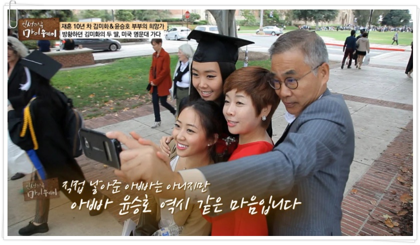 김미화가 윤승호 교수와 재혼을 하고 처음부터 행복한 꽃길만 펼쳐진 건 아니라고 한다. 엄마의 재혼과 함께 두 딸 유림이와 예림이는 방황하기 시작했다. 두 딸이 엇나가는 것이 걱정된 김미화는 재혼 이듬해, 십대였던 두 딸을 미국으로 유학 보냈다. 어린 마음에 엄마에게 버림받았다고 오해한 딸들은 서운했다고 지금에야 이야기한다고 한다.