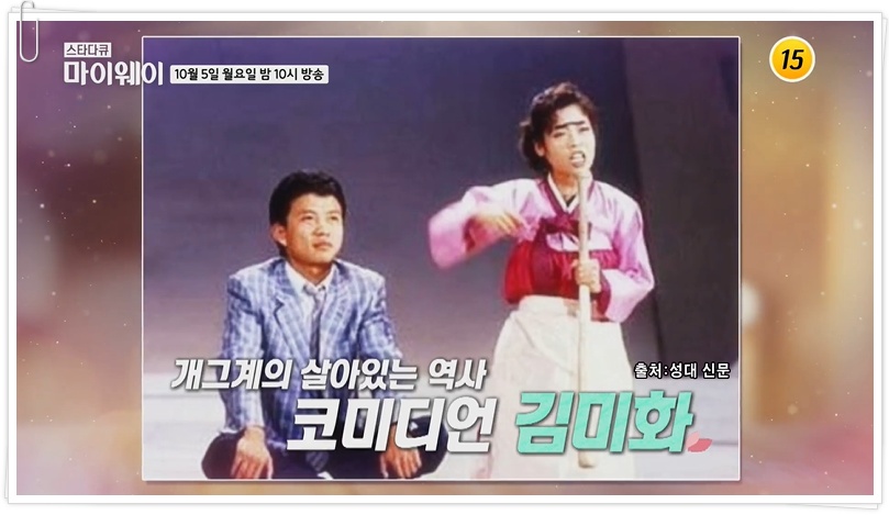 개그계의 살아있는 역사 코미디언 김미화가 스타다큐 마이웨이 218회 주인공으로 출연해다.