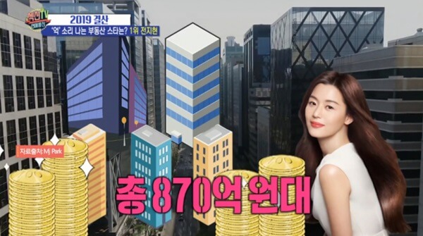 이처럼 큰 인기를 받으면서 활동을 하고 있기에 재산은 물론 전지현의 건물만으로 현재 연예인 부동산 자산 순위 1위로 알려져 있다고 하는데요. 삼성동 아이파크 약 60억, 대치동 S빌라 약 40억 원, 삼성동 주택 75억, 총 175억 원에 해 당하는 주거용 부동산과 논현동과 이촌동의 빌딩까지 보유하고 있는 중이라고 합니다.