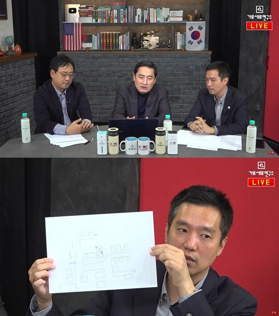 김 전 기자는 "성폭행 피해자 A씨가 직접 구조를 그려줬다"며 유흥업소의 구조와 성폭행이 발생했다는 룸의 위치 등이 그려진 그림을 공개했습니다. 김 전 기자는 그림을 토대로 "별표 친 게 9번 방인데 이곳에서 김건모와 피해자가 바싹 붙어 있었다"며 "다른 사람은 없었고 단둘이 있었다"고 설명했습니다.
