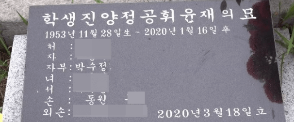 바로 할아버지의 묘비에 가족들의 이름이 써있었는데, 그중 '자부'라는 칸에는 박수정이라는 이름이 적혀있던것입니다. '자부'란 아들의 부인을 뜻하는데요. 할아버지의 아들은 정동원의 아빠이므로 바로 새엄마를 뜻하는 거였기 때문입니다.