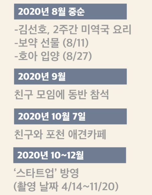 김선호 : 한번은 촬영이 일찍 끝났어. 뭐하냐니까 잔다는 거야. 그래서 선물을 들고 집에 갔는데 (집에) 없는 거야. 차도 없고. 그 이후로 거짓말 안 하기로 했는데. 진짜 열 받아.