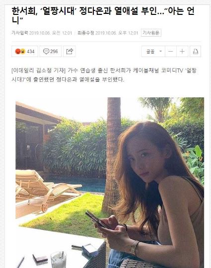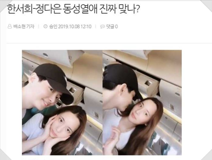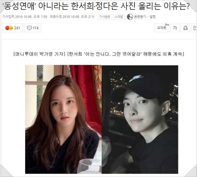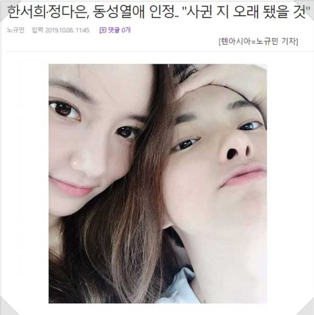 그런데 한서희가 정다은과의 열애를 인정했다가