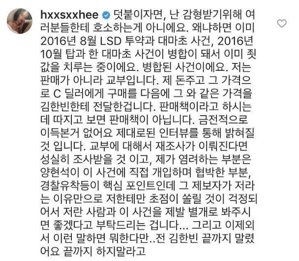 한서희는 지난 2017년 빅뱅의 탑과 대마초를 흡연한 협의가 있고