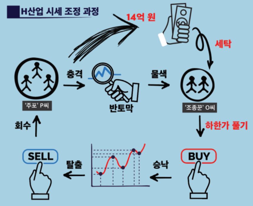검찰에 따르면 P씨 등은 H산업 주가를 인위적으로 조종, 약 2년에 걸쳐 298억 원의 부당이득을 챙겼다.