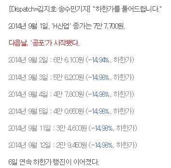 2014년 9월 15일, H산업은 약속(?)대로 하한가를 벗어났다.