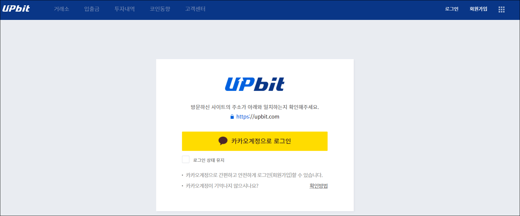 또한, 타 거래소에 비해 100개 이상의 암호화폐를 거래할 수 있는 장점이 있고, 카카오톡 계정을 이용해 간단하게 계좌 개설과 로그인을 할 수 있는 장점이 있습니다. 게다가 수수료도 0.05%로 다른 곳에 비해 가장 저렴해서 많은 사람들이 이용하는 거래소입니다.
