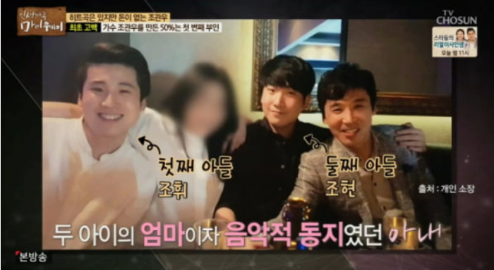 조관우는 “이혼 당시 재혼하면 아내에게 저작권을 양도하기로 했다”고 밝히며 "사실 가수 조관우 이름을 만드는데 첫 번째 부인이 50% 일조했다"라며 "아내에게 음악을 배웠고, 작사도 아내가 다 했다. 내 이름으로 올리길 원해서 그렇게 했다“라고 밝혔는데요.