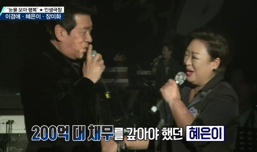 혜은이는 10년 동안을 각종 행사와 밤무대를 돌며 200억의 빚을 갚았다고 알려졌습니다.