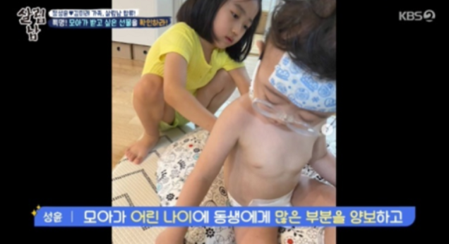 모아가 다섯 살 때 둘째 아온이 태어나면서 김미려와 정선윤은 딸 모아한테 많은 신경을 써주지 못해 미안함과 걱정스러운 마음을 드러냈습니다. 정성윤은 “어린 나이에 동생에게 많은 부분 양보하다 보니까 정서적인 교감이 부족했던 게 아닌가 한다.”라며 이벤트를 준비하는 등 행복한 시간을 함께하는 모습을 공개했습니다.