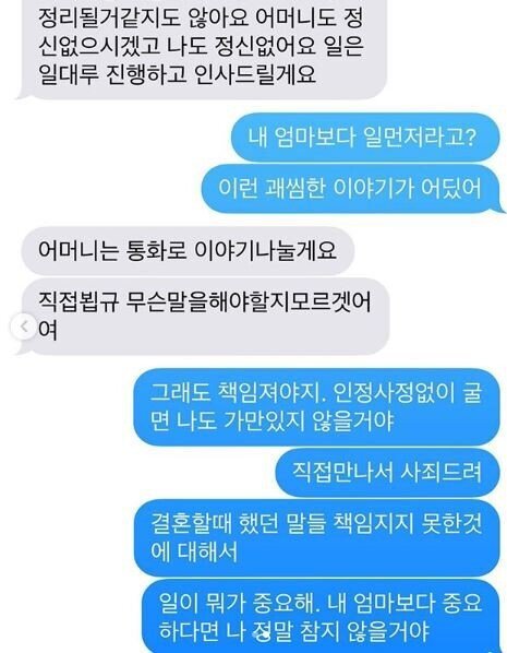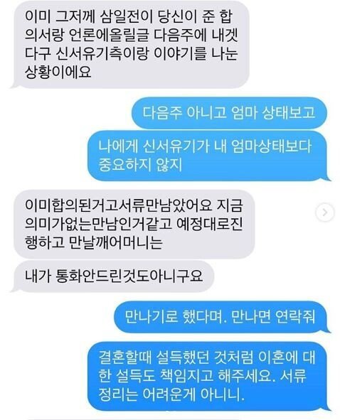 안재현 : "이미 합의된 거고 서류만 남았어요. 지금은 의미가 없는 만남인 것 같다. 예정대로 진행하고 만날게. (당신) 어머니는. 내가 통화 안 드린 것도 아니구요"