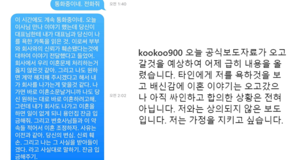 그리고 엄마의 상태가 안좋으니 엄마를 만나 둘의 이혼에 대해 설득해달라, 그렇지 않고 몰인정하게 굴면 가만 있지 않겠다 이런 내용인데요, 글은 약 5시간 정도 있다가 삭제가 되었으며 삭제를 한 이유는 알 수가 없는 상황입니다.