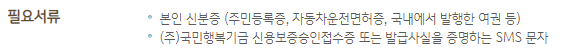 국민은행 안전망 대출 신청시 필요서류는 본인 신분증 및 국민행복기금 신용보증승인접수증 또는 발급사실을 증명하는 문자메세지가 필요하니 참고하셔서 준비하시길 바랍니다.