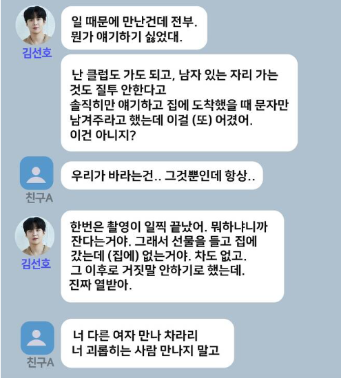 김선호 : 일 때문에 만난 건데 전부 이야기하기 싫었대.