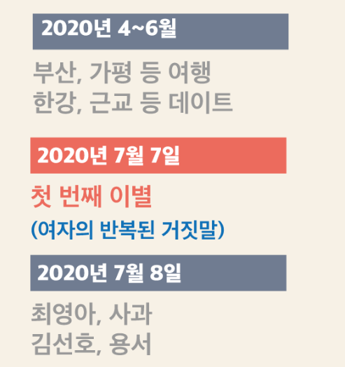 “김선호와 최영아가 서로의 카톡을 확인한 적이 있어요. 그때, (김선호는) 최영아의 컴퓨터에 저장된 수많은 영상 및 녹취 파일의 존재를 알게 됐습니다. 입장 바꿔 생각해보세요. 무섭지 않나요?”