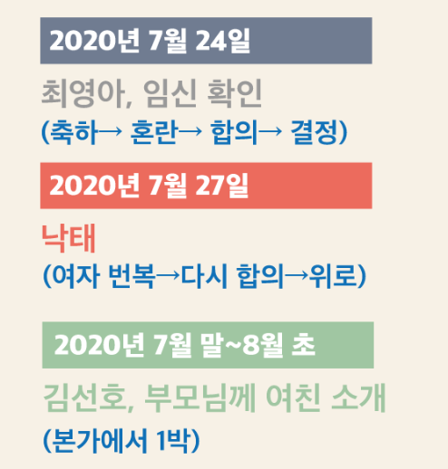 최영아 씨는 7월 24일 임신 사실을 확인했습니다. 김선호에게 (울면서) 전화를 했죠? 문자도 보냈고요. 당신은 폭로글에서 “(김선호가) 쓰레기 답변을 보냈다”고 말했고요.