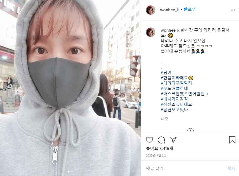 후드자켓과 마스크로 완전무장한 후 남편분을 기다리는 모습같습니다. ㅎㅎㅎ
