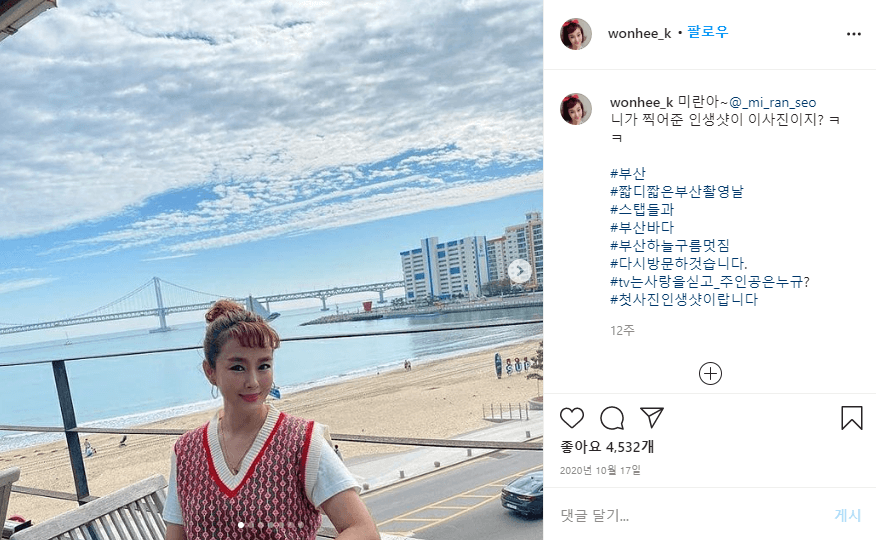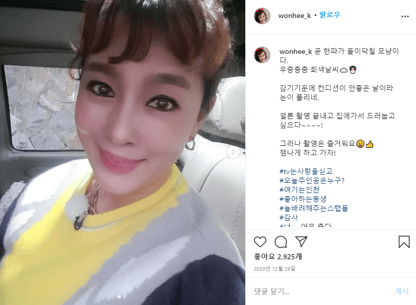 김원희의 인스타는 대부분 셀카사진, 촬영장 사진등이 많았는데요. 함께 보실까요?