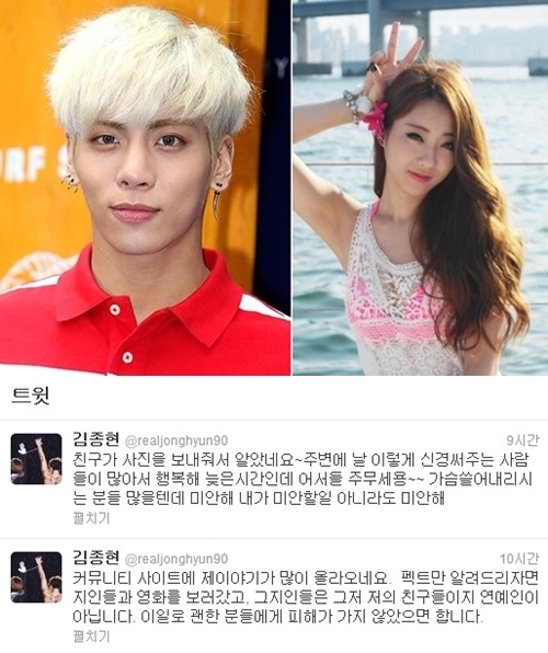 샤이니 종현이 나인뮤지스 경리와 심야 영화 데이트에 대해 해명했다. 종현은 11일 오전 자신의 SNS에 '커뮤니티 사이트에 제 이야기가 많이 올라오네요.