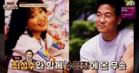 노사연 : "이성미, 박미선씨와 수영장에서 태닝하다 가수 최성수씨를 만났어요. 반갑다고 인사하는데 옆에 있는 남자가 눈에 확 들어오더라고요. 미국에서 온 후배라는데 얼굴이 정말 작고, 귀티 나고, 지적이게 생긴 거예요."