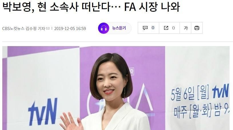 박보영은 최근 소속사와 결별, 팬카페에 직접 글을 남겼습니다.