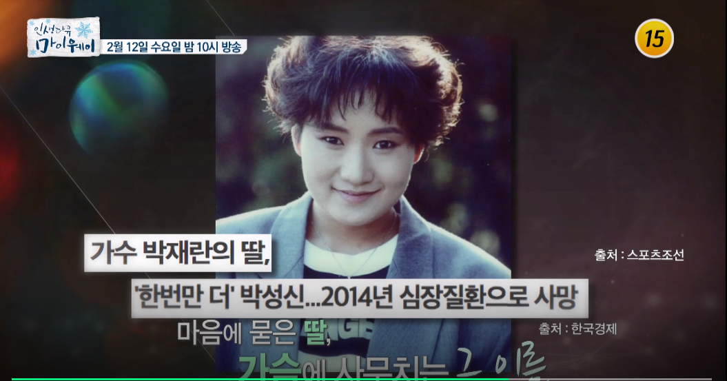 두 딸 중 유달리 엄마 박재란을 많이 닮았다는 고 박성신은 "엄마처럼 훌륭한 가수가 되겠다"는 꿈을 이루지 못하고 지난 2014년 심장마비로 향년 45세에 세상을 떠나고 말았습니다.