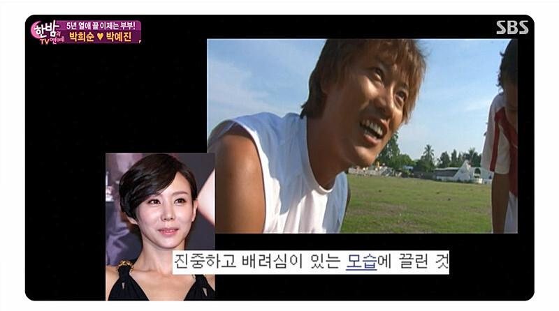 박예진 역시 박희순의 진중하고 배려심 있는 모습에 끌렸다고 말합니다.