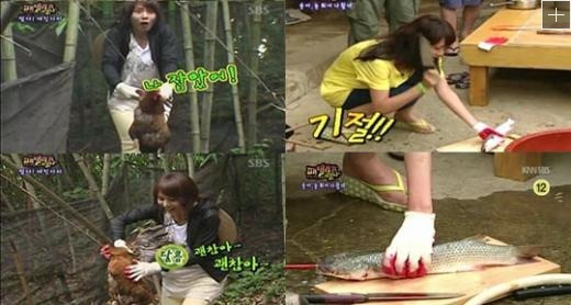 남자들도 도망가는 닭을 맨손으로 잡는가 하면, 웬만한 남자들도 하기 꺼려하는 물고기 손질(물고기를 칼로 쳐서 기절시키고, 배를 가르고, 내장을 맨손으로 따고)을 능수능란하게 해냅니다.