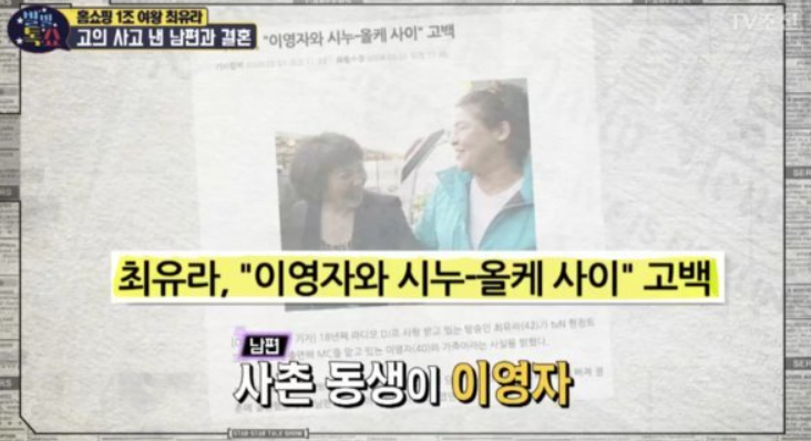 하지만 두 사람의 열애설이 기사로 나가며 당시 심증만 가지고 열애설 기사를 낸 것에 화가 난 최유라는 아는 기자에게 연락해 열애가 아닌 ‘결혼한다‘라는 기사를 내달라고 부탁하게 됩니다. 당시 부모님과의 상의는 없었던 상황이었다고 하는군요. 이어 남편 맹기호 씨는 MBC 촬영감독이며 개그우먼 이영자의 사촌 오빠라고 합니다.