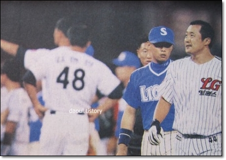 그런 와중에 6월 28일 잠실구장에서 열렸던 LG 트윈스전에서 배영수가 LG 포수 조인성(당시 27살)과 정면충돌하는 사태가 빚어졌었는데요. 경기에서 LG가 1회 삼성 선발 오상민을 집중 공략, 4점을 뽑아냈고 삼성은 마해영이 6회에 2점 홈런을 날려 2-4로 추격을 하고 있던 상황이었죠.