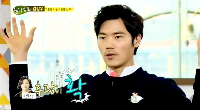김강우는 "영화 가면에서의 애정 씬을 본 여자친구가 충격을 받은 이후로 영화를 안 본다"고 하며 김강우는 또 그런 아내(부인)가 싫지만은 않다는 또 다른 에피소드도 함께 공개했습니다.