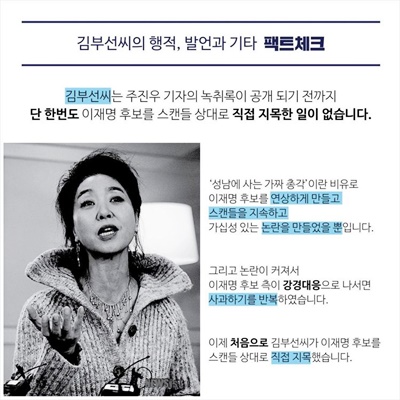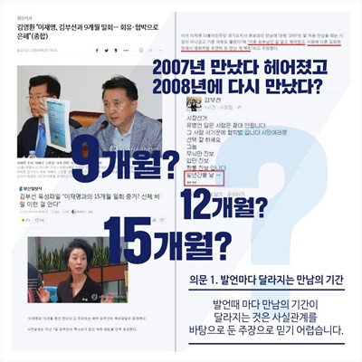 이후 여러차례 이 주장을 꺼냈다가 다시 부정하는 과정을 반복했는데요. 정치인의 실명을 거론하지는 않았지만 정황상 이재명으로 추정되었고 김부선 본인도 이를 굳이 부정하지 않았습니다.