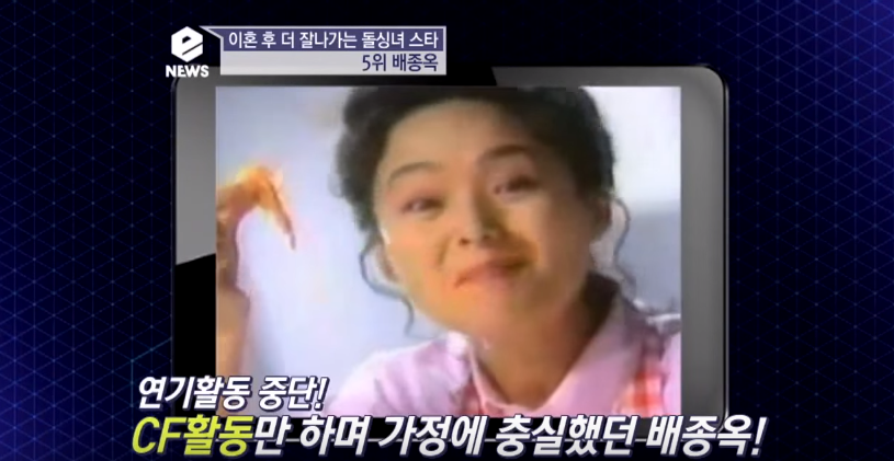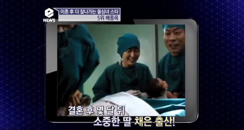 배종옥은 결혼 후 연기활동은 중단하고 몇몇 CF 활동만 하고 가정에 충실했는데요, 결혼 후 몇 달이 지난 뒤 딸 채은 양을 얻게 되었지만 결혼 1년 6개월 만에 성격차이로 이혼을 하게 되었습니다.