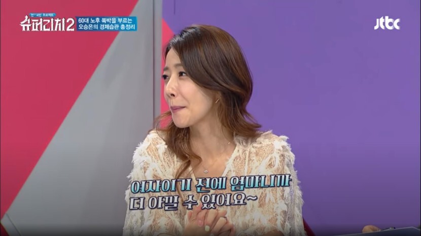 오승은씨가 이혼 후 슬픔과 상실의 아픔을 감추기 위해 오히려 바쁘고 긍정적으로 살려고 했다고 합니다.
