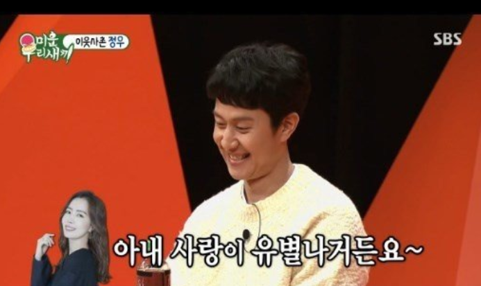 정우는 아내 김유미에 대해 “사귈 때와 결혼하고 나서 느낌은 다른데 여전히 김유미 손을 잡으면 설렌다” 라고 애정을 드러냈습니다.