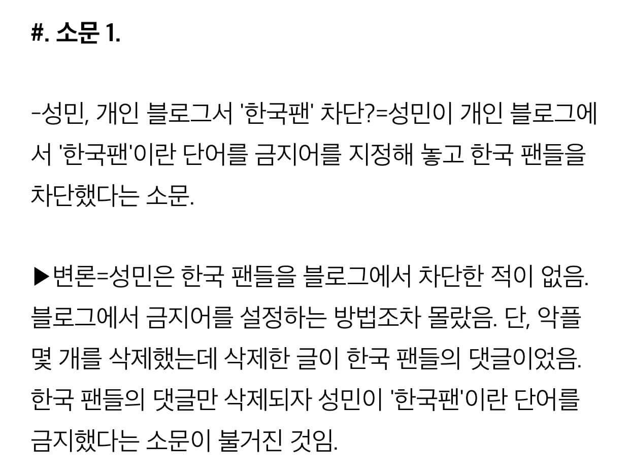 6. 본인 블로그 '한국팬' 금지어 설정했다는 소문