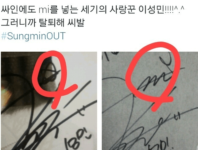 며칠 뒤, 팬싸인회가 있었는데요. 엘프들은 그때 성민이 어떠한 말이라도 해줄 것을 기대하며 서운한 마음을 달랬습니다. 하지만 팬싸인회 당일에도 별다른 말이 없었고 오히려 무슨 말을 물어보려고하면 매니저가 제지하고, 팬이 테이블에 손만 올려도 제지, 몇몇 엘프가 울면서 물어봤는데도 아무 대답을 하지 않았습니다. 정말 팬이라면 너무 속상할 것 같군요.
