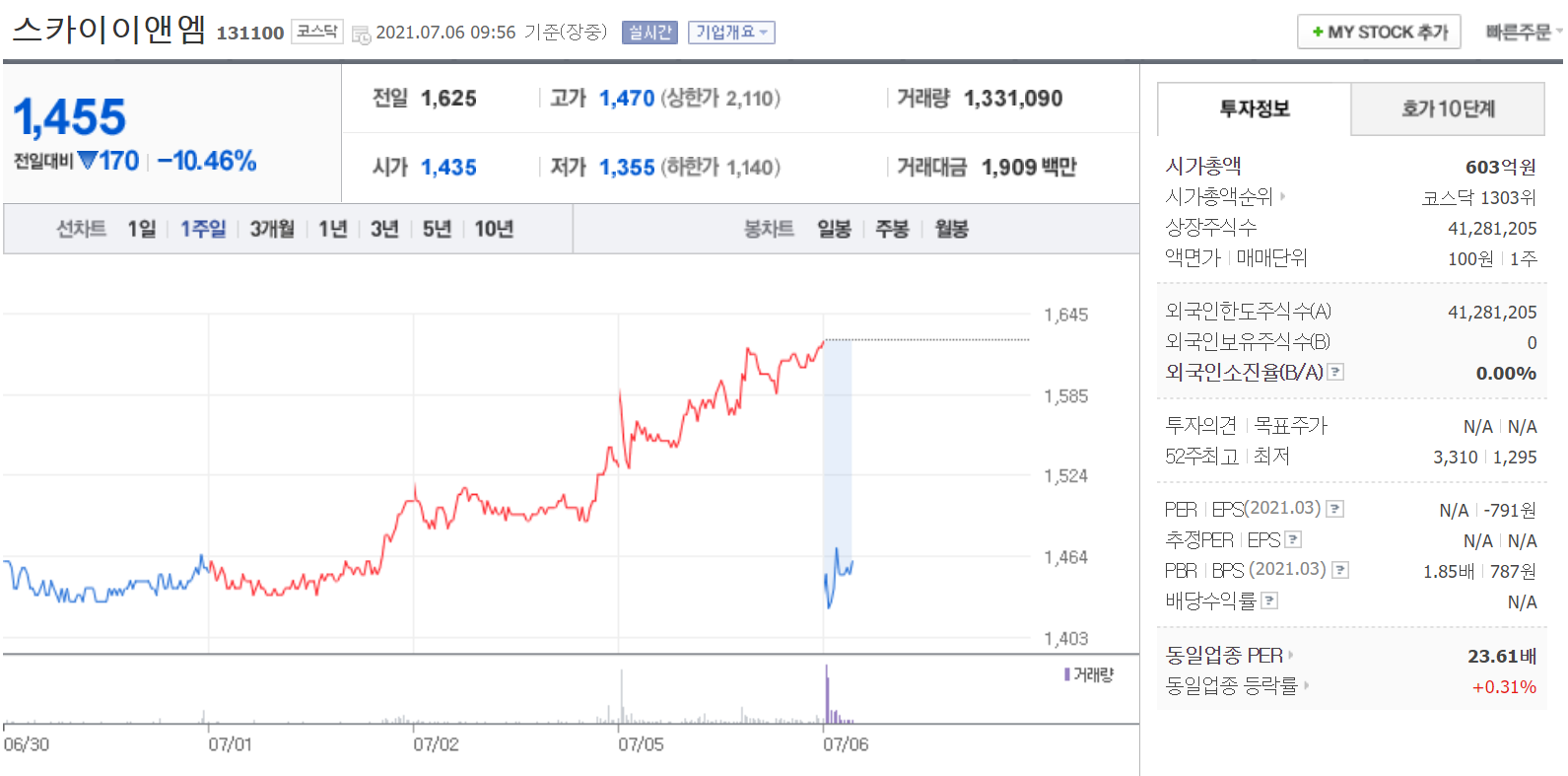 싸이월드제트(싸이월드Z) 관련주들에는 스카이이앤엠 과 인트로메딕 이 있습니다. 7월 5일 싸이월드제트의 부활이 예정되었으나 8월로 연기되는 바람에 오늘 6일 주가가 많이 떨어진 것으로 보입니다. 그렇다면..? 싸이월드제트가 진짜 부활 할 8월 전에 매수해 놓는 방법도 있을 것 같습니다.
