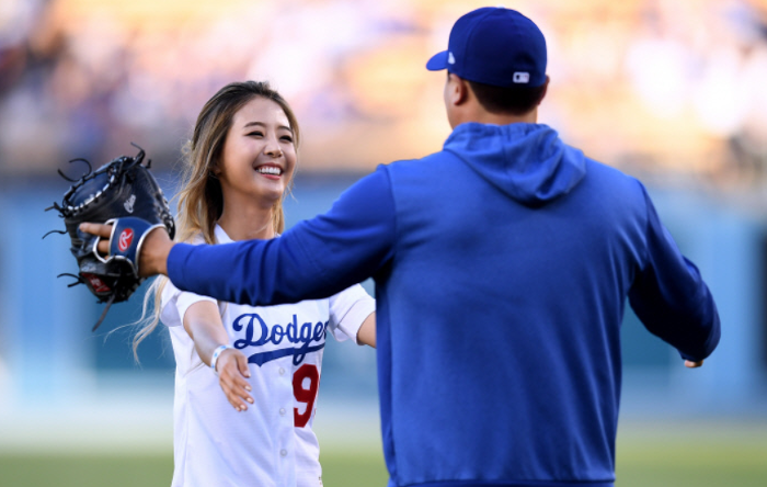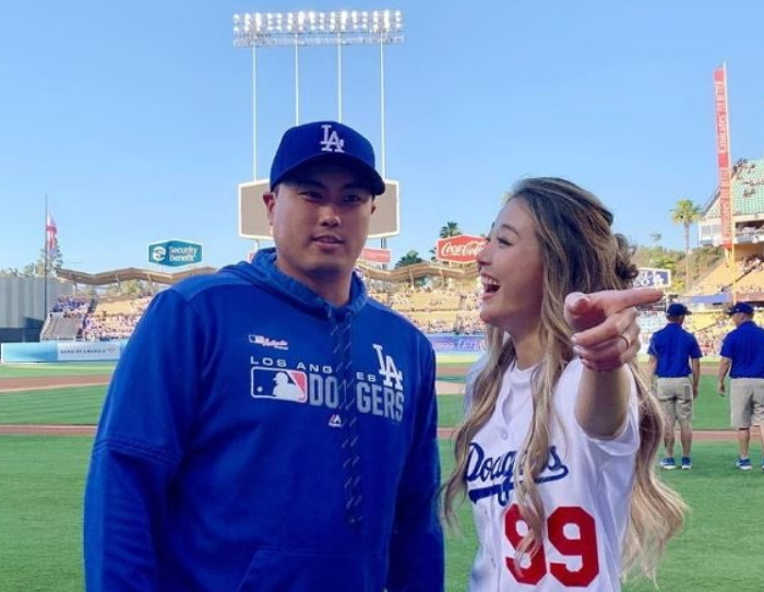 이어 배지현은 미국 캘리포니아주 로스앤젤레스 다저스타디움에서 '2019 메이저리그 LA다저스와 애리조나 다이아몬드 백스' 경기에서 시구를 맡아 남편 류현진을 응원하기도 했습니다.