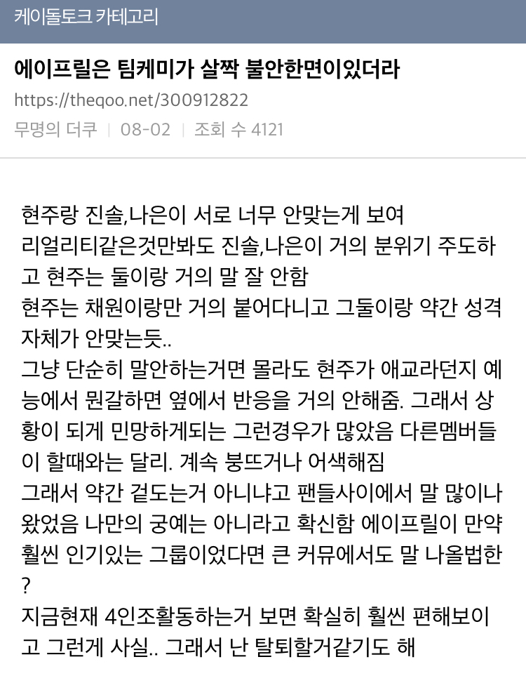 에이프릴이 인기 없는 건 당연하다.
