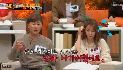 남편 김우혁은 "하도 나가라고 하니깐 진짜로 그냥 나가버렸다."라고합니다.