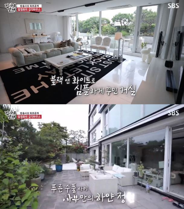 엄정화는 오늘 방송된 SBS 집사부일체에서 자신의 집을 최초로 공개해 눈길을 끌었는데요, 엄정화의 집은 세련된 인테리어에 넓은 마당을 보유하고 있었습니다.