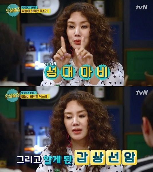 이후 엄정화는 2018년 tvN 인생술집에 출연해 갑상선암 수술로 힘들었던 일들을 털어놓기도 했는데요,