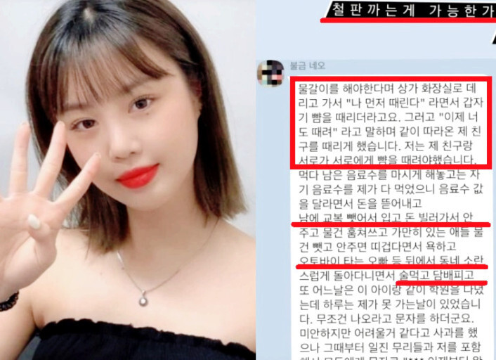 A씨는 "가해자에게 학교 폭력을 당한 게 맞으나
