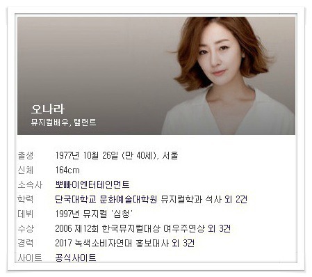 뮤지컬 여우주연상도 받으시고 누구보다 열심히 연기 생활을 하고 있는 오나라.