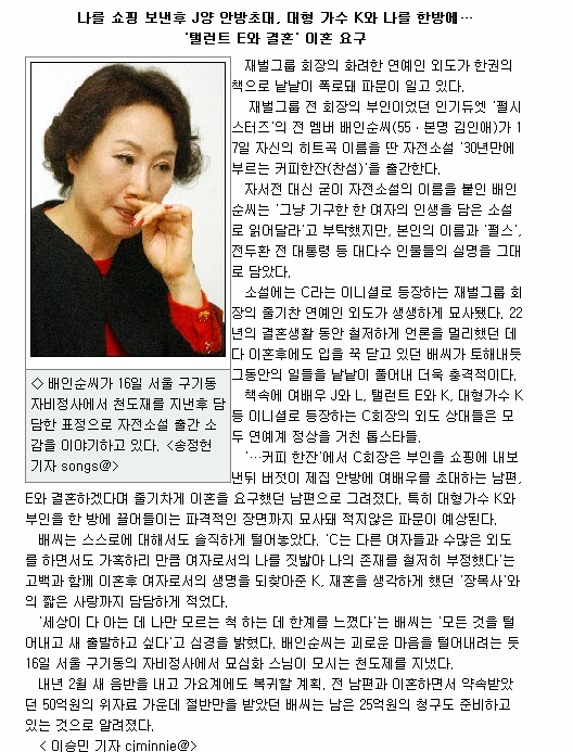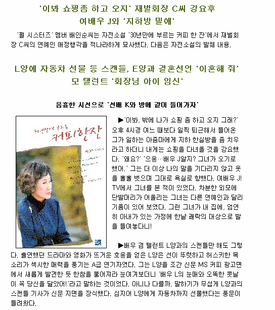 참고로 배인순이 자서전을 냈을 때, 음정희 역시 이슈가 됩니다. (배인순 음정희 최원석 전회장)