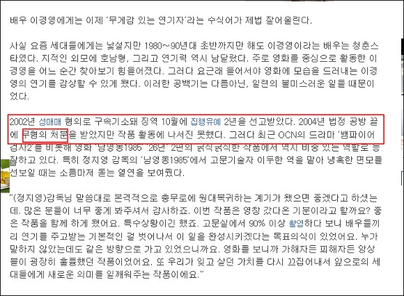배우로서 큰 타격을 입은 이경영이기 때문일까요, 차츰 언론에서 그에 대한 '호의적인 기사'가 나오기 시작합니다.