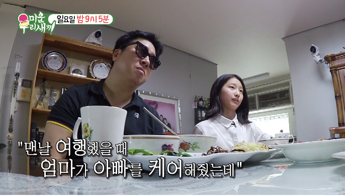 때문에 지우는 비행기에서부터 아빠를 위해 음식 위치를 알려주고 대신 스테이크를 잘라주는 등 아빠의 기내식을 챙기기도 하고, 또한 아빠를 위해 리조트의 시설과 풍경을 구체적으로 설명해주는 모습을 보여주어 보는 이들의 가슴을 훈훈하게 만들었습니다.