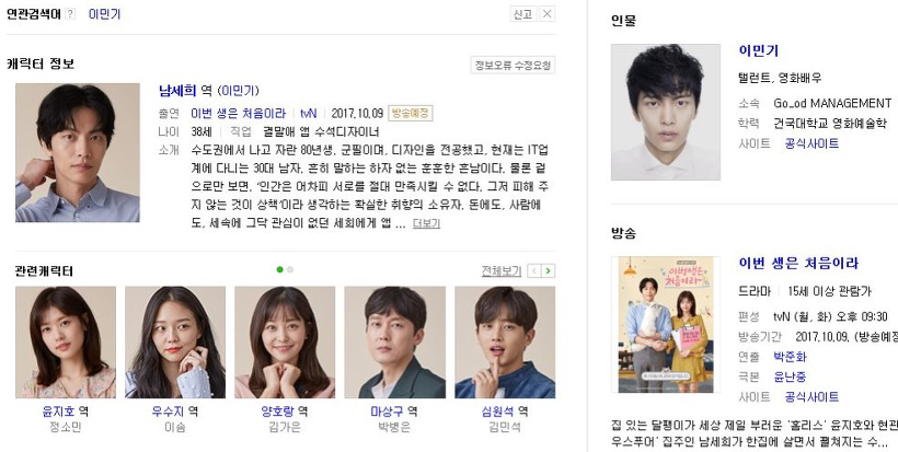 tvN NEW 월화드라마, <이번 생은 처음이라> 10월 9일 월요일 밤 9시 30분, tvN 첫 방송 집 있는 달팽이가 세상 제일 부러운 홀리스(정소민) 와 현관만 내 집인 "하우스 푸어" 집주인 남세희 (이민기) 가 한 집에 살면서 펽쳐지는 수지타산 로맨스, 스페셜 토크, 깨가 쏟아지는 세 커플 ! 배우들이 직접 말하는 "이번 생은 처음이라" 아래의 영상을 통해 직접 확인 하세요. 네이버에서 ㅋㅋ 관련 영상 넣으려고 하는데,....