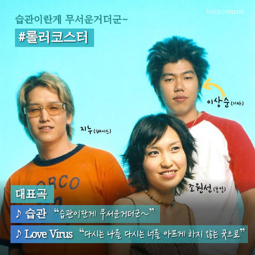 이상순은 기타리스트로 합류하였는데 지누 역시 국제페스티벌에서 최우수 기타리스트 상을 수상하기도 하는 등 뛰어난 실력의 기타리스트였으나 롤러코스트 에는 이상순의 연주가 어울린다고 하여 이상순이 메인 기타를 맡기도 하였습니다. 과거 이상순의 얼굴 상당히 보기가 좋네요.
